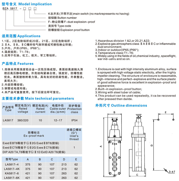 BZA(LA)5817系列防爆電動(dòng)葫蘆按鈕(IIB)